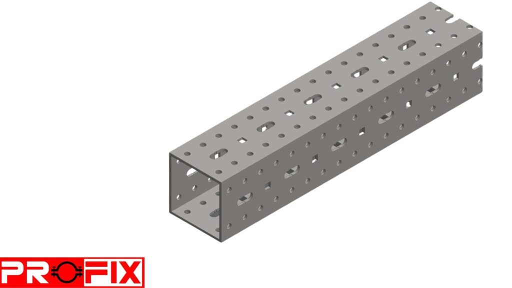 این پروفیلها ستون فقرات سیستماند. لبههای دندانهدار درگیری مهرهها را افزایش میدهد. پروفیلها در انواع سبک و سنگین تولید میشوند (از ۲۰×۳۰ تا صنعتی 100×100). پوششها شامل گالوانیزه سرد برای محیط داخلی و گالوانیزه گرم برای محیطهای مرطوب است.